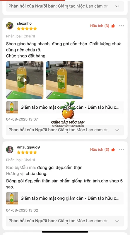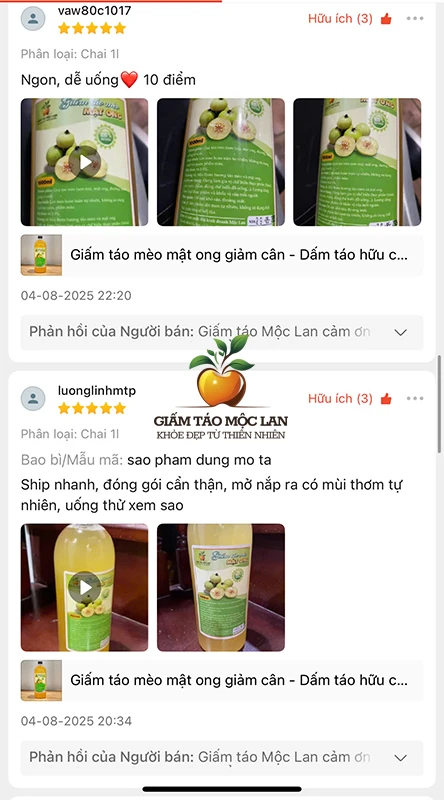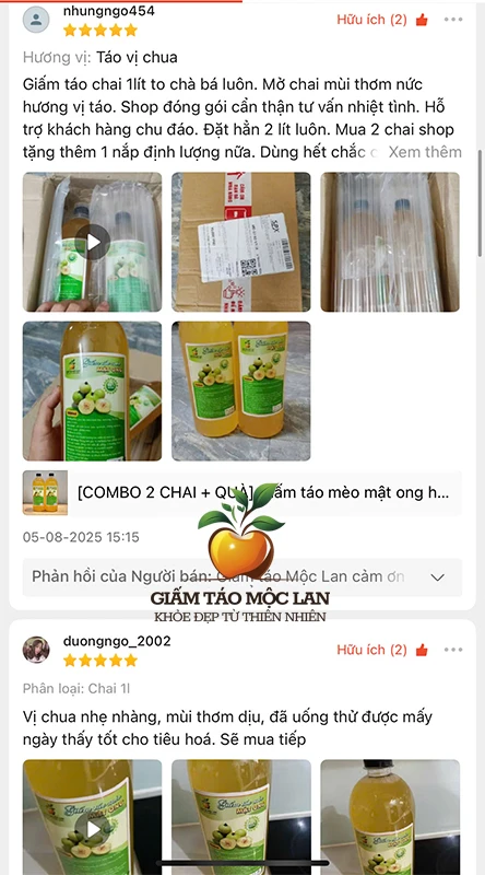 Sản phẩm giấm táo Mộc Lan Nhiên là thương hiệu nổi tiếng được khách hàng tín nhiệm bởi có chất lượng cao, nguồn nguyên liệu sạch, xưởng sản xuất đạt tiêu chuẩn đủ điều kiện an toàn thực phẩm.